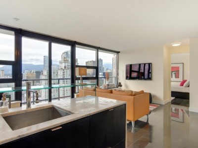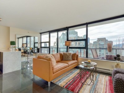 Yaletown Park 1 - Furnished Penthouse unit with amazing postcard view of Vancouver. Very private level with only 3 other units. Large balcony for lounging or entertaining. Unbeatable location - you are steps from the quaint boutiques of Yaletown, theatres, library, gourmet supermarkets, and the Seawall. Top notch building with a GRAND LOBBY, exercise centre, endless gardens, party room, media room and even a GUEST SUITE. Hydro is included but capped to $50/month. Sorry, No Pets Allowed.